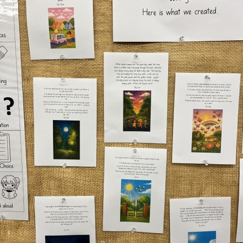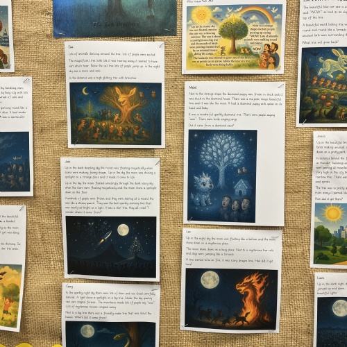 All classes have a working wall with English and writing information on them. You will see story maps in different formats around the school, and lots of examples of the children's own work.