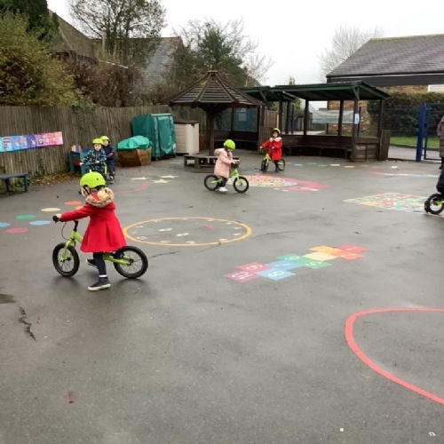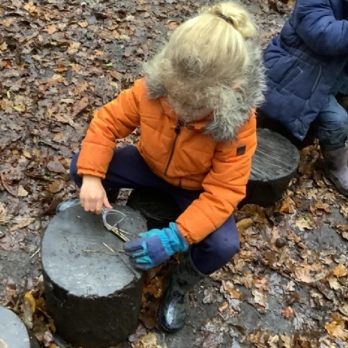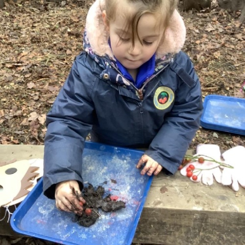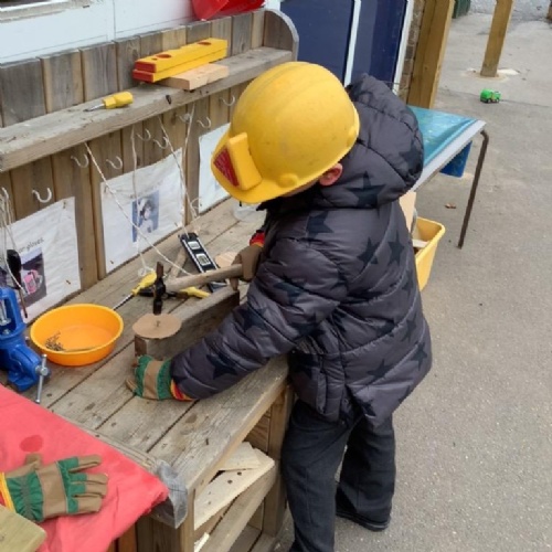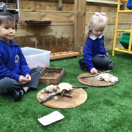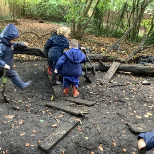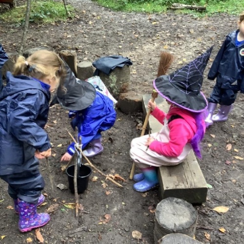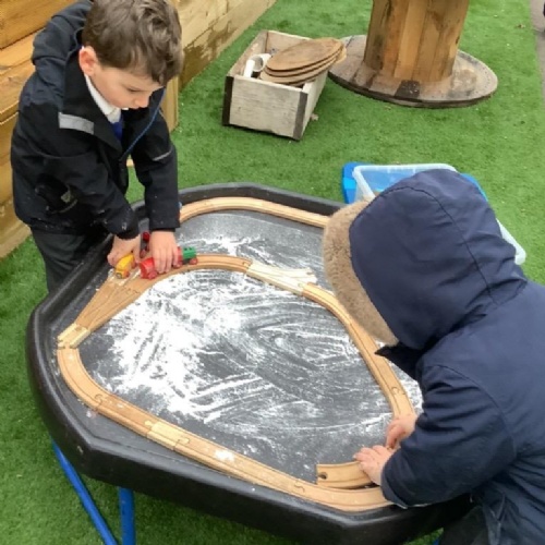 We have built our school environment to enable our children to strengthen their core muscles through physical play, children spend time outdoors in their natural environment in all weathers. They develop through wonderful, exploratory, sensory experiences in our mud kitchen, sandpit and taking part in Forest School sessions. Our learning environment is adaptable in order to reflect children's interests and progression. The children are supported to learn to work together, manage their feelings and ask questions through skilled adult facilitated play.
