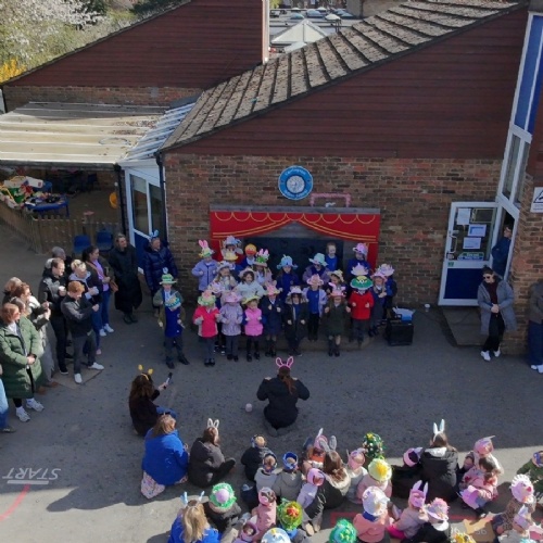 What a fabulous turnout for our Easter bonnet parade in the glorious sunshine this morning! The children all looked amazing with their chicks, eggs, flowers and other wonderful decorations on their bonnets.
