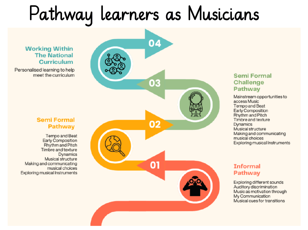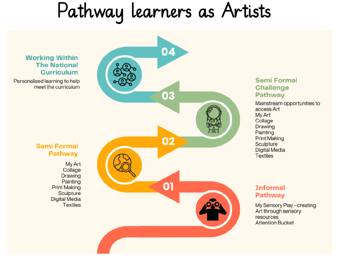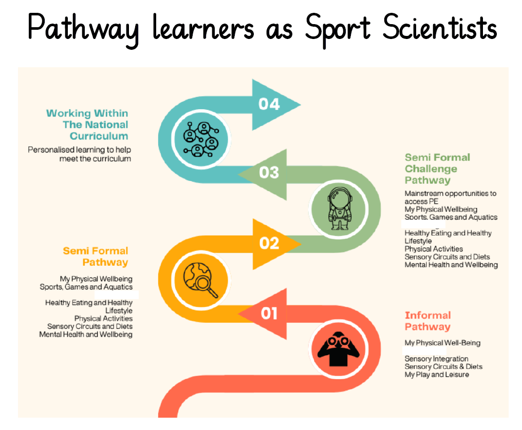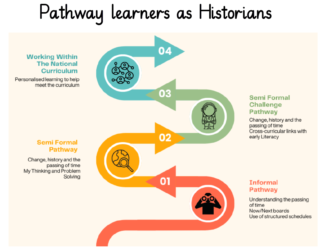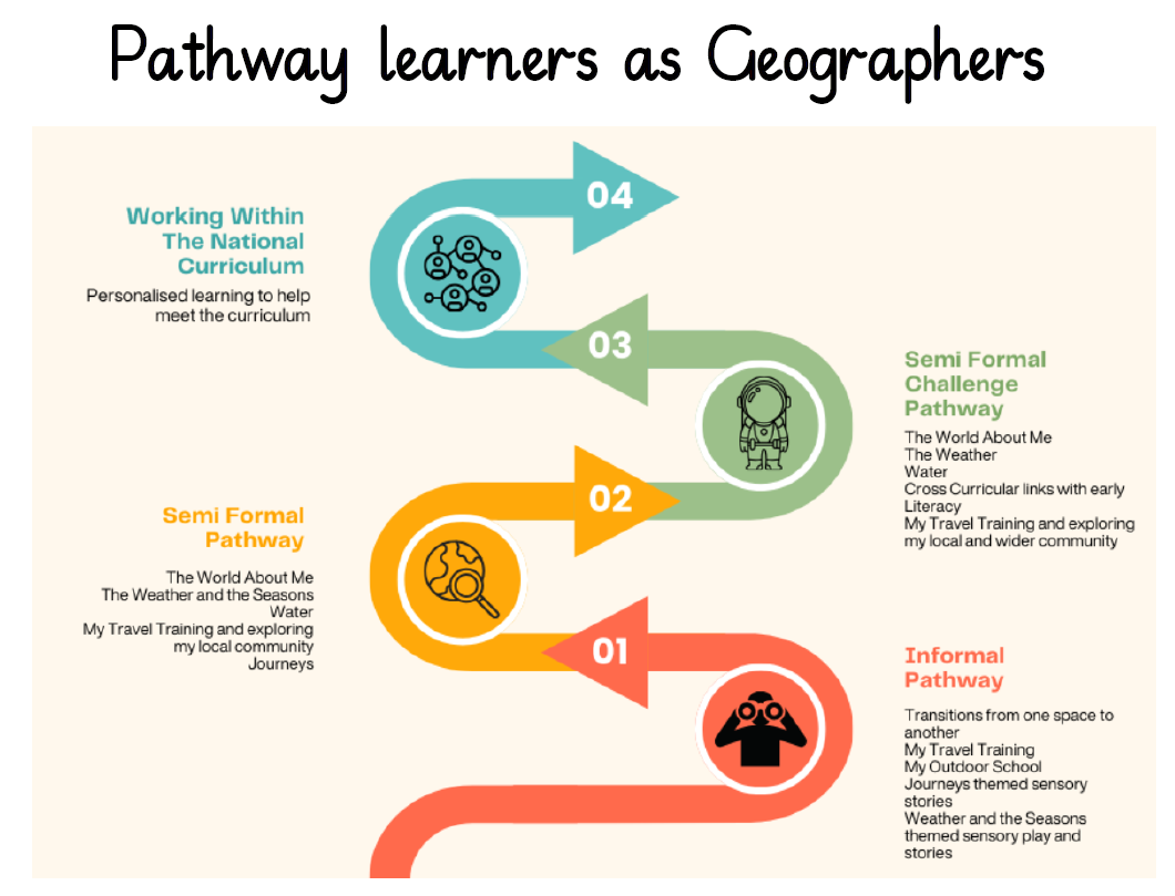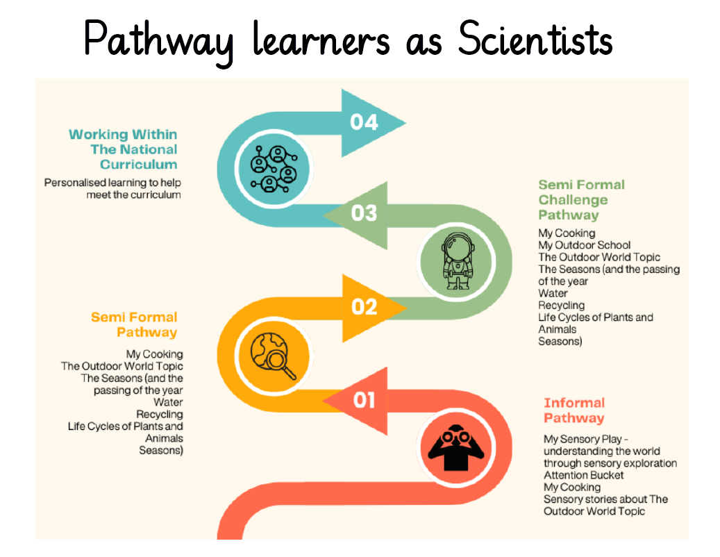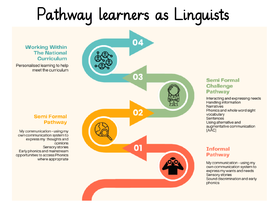 We have three specialist pathways, followed by our 'Formal' pathway which represents the offer provided for pupils with complex needs within our mainstream environment. Pupils are assessed against the pathway criteria on entry to the school and then regularly evaluated to ensure that their pathway is provided the appropriate level of challenge.