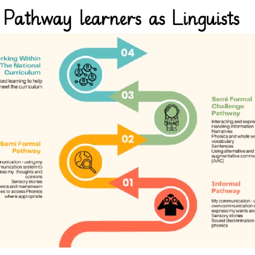 We have three specialist pathways, followed by our 'Formal' pathway which represents the offer provided for pupils with complex needs within our mainstream environment. Pupils are assessed against the pathway criteria on entry to the school and then regularly evaluated to ensure that their pathway is provided the appropriate level of challenge.